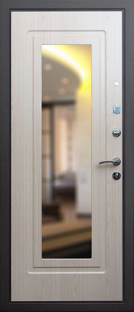 Прочная металлическая Дверь с зеркалом DZ385 по цене от 30 000 руб. под заказ в любой комплектации. Вы можете выбрать материал, замки, цилиндры и многое другое. Производим сами! Быстрая доставка и установка в Урус-Мартане.