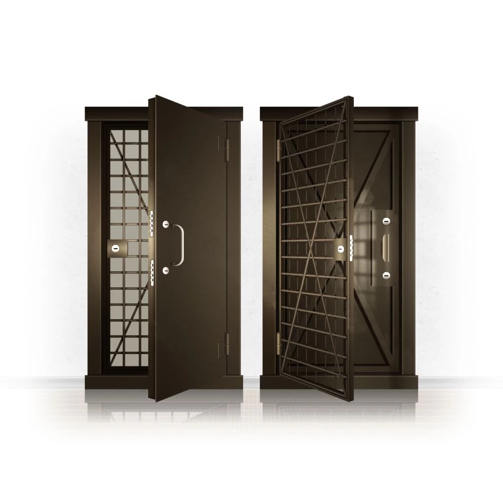 Металлические двери КХО и КХН представляют собой входные блоки, обладающие высоким уровнем взломостойкости и состоят из трех основных элементов: усиленного каркаса, сплошного металлического полотна и решетчатой двери. Дверной блок изготавливается из стального уголка 100*100 мм. Места крепления блока к стене цементируются и закрываются стальными наличниками шириной 40 мм. Крепеж заходит вглубь стены на 80 мм. В конструкции внешней створки монтируются ребра жесткости, для обшивки используется сталь толщиной не менее 3 мм. Внутренняя решетка изготавливается из прутка диаметром 16 мм. Размер ячеек решетки должен составлять не более 15 на 15 см. В точках пересечения прутья надежно приваривают друг к другу. В КХО и КХН необходимо поддерживать определенную температуру и влажность. Для этого внутреннее пространство глухой двери заполняется теплоизоляционным материалом, а по периметру двери приклеивается уплотнитель. Такие двери оборудуются замками с повышенным уровнем взломостойкости. Специализированные двери КХО и КХН в Урус-Мартане могут быть оснащены сигнализацией, в конструкции могут быть проушины для навесного замка и элементами для опечатывания. Если идет речь о двери в комнату хранения оружия, в створке оборудуется окно для выдачи оружия и спец. средств, которое накрывается стальной дверцей.