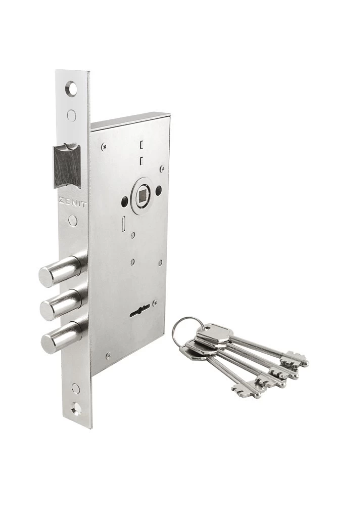 Замок врезной сувальдный ЗВ9-6 подходит для установки во входные двери толщиной до 50 мм. Реверсивная защёлка, подходит для левых и правых дверей. Корпус выполнен из стали.