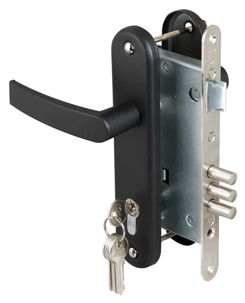 Замок врезной цилиндровый с защёлкой в комплекте с ручкой ЗВ4-3 (черный муар), 5 кл. /78401/ TL5672