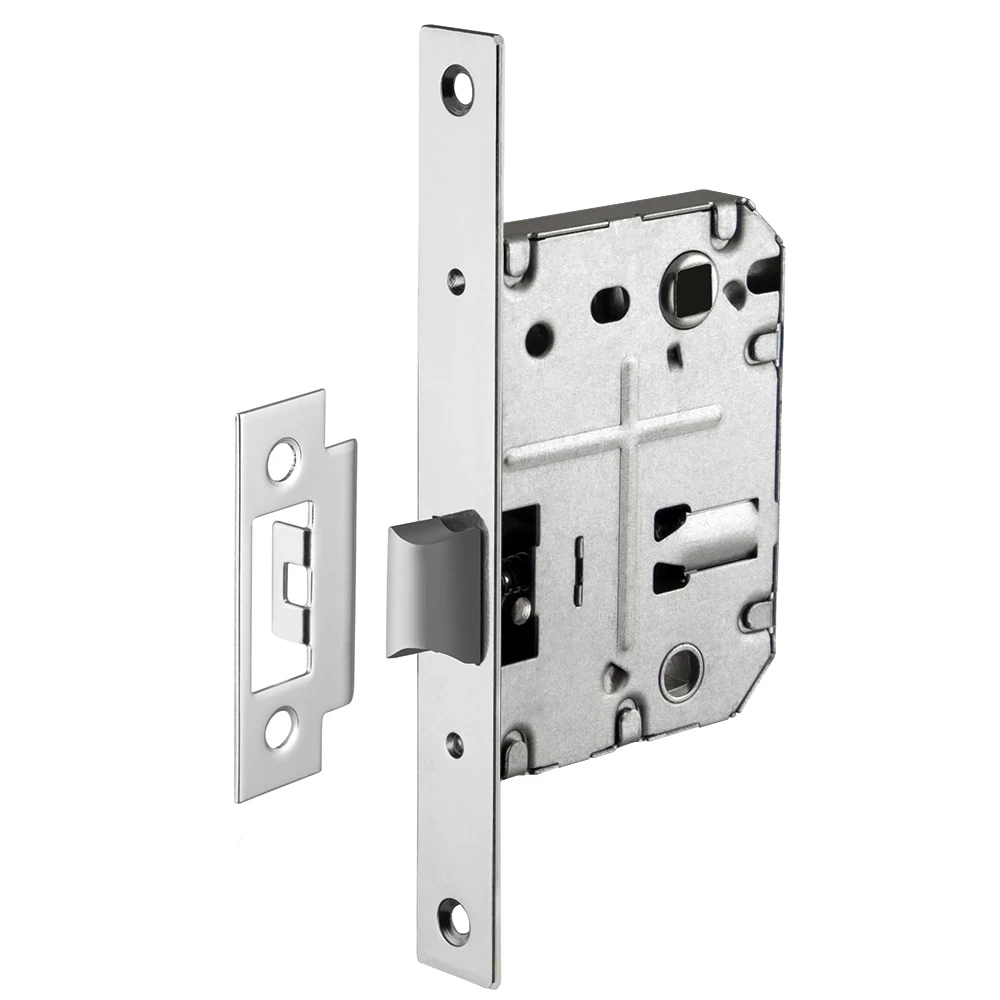 Защелка врезная с пластиковым механизмом AJAX LP72-50 предназначена для установки в деревянные межкомнатные двери левого и правого открывания. Корпус выполнен из стали с гальваническим покрытием. Ударопрочный пластиковый механизм обеспечивает бесшумность работы защелки. Защелка LP72-50 имеет 2 класс надежности (100 000 циклов открывания/закрывания). Размер бэксета - 50 мм, межосевого расстояния - 70 мм. Возможна установка дверных ручек на стяжные винты для более прочного крепления. Цвет: хром. В комплектацию входят: ответная планка и крепежная фурнитура в цвет изделия.