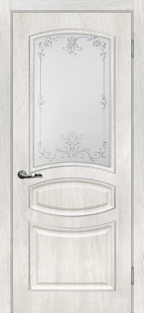 Качественная Межкомнатная дверь Сиена-5 Дуб жемчужный продается по цене 12 107 руб. за полотно. Доступные размеры 550x1900, 600x1900, 600x2000, 700x2000, 800x2000, 900x2000. Так же в наличии большой выбор комплектующих к данной модели, подходящих по цвету и фактуре.