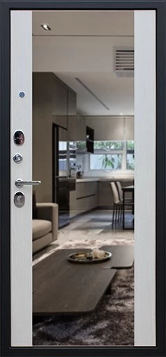 Надежная входная Дверь Вектор с зеркалом премиум класса по цене 49 410 руб. Большая толщина стали защитит от проникновения в ваш дом, квартиру или коттедж. Используется очень качественная фурнитура: замки, цилиндры, ручки, защелки. Покрытие и отделка двери изготовлено под внимательным контролем производителя. Дверь имеет долгий срок службы и гарантию.