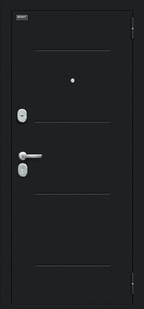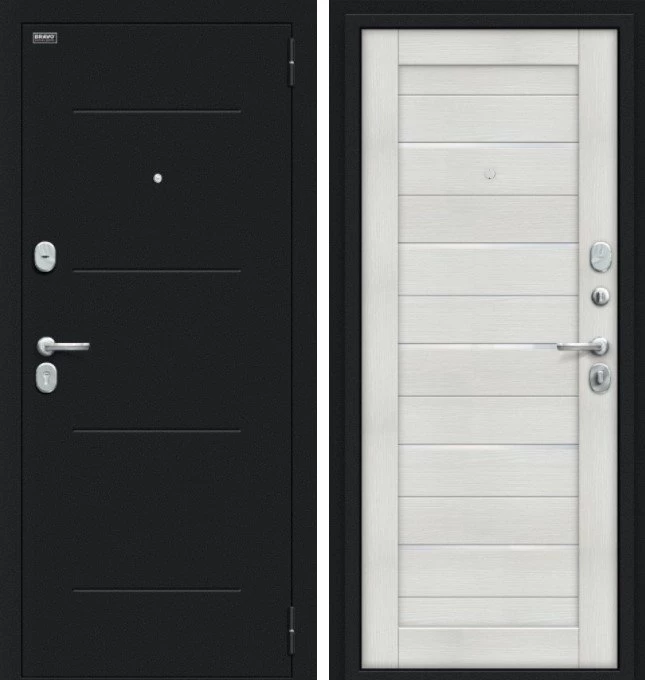 Надежная входная Браво Техно Kale Букле черное/Bianco Veralinga премиум класса по цене 34 510 руб. Большая толщина стали защитит от проникновения в ваш дом, квартиру или коттедж. Используется очень качественная фурнитура: замки, цилиндры, ручки, защелки. Покрытие и отделка двери изготовлено под внимательным контролем производителя. Дверь имеет долгий срок службы и гарантию.