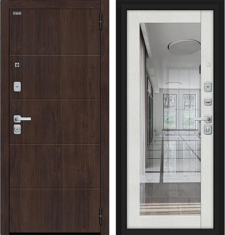Надежная входная Дверь Браво Флэт/BChrome Almon/Bianco Melinga премиум класса по цене 42 660 руб. Большая толщина стали защитит от проникновения в ваш дом, квартиру или коттедж. Используется очень качественная фурнитура: замки, цилиндры, ручки, защелки. Покрытие и отделка двери изготовлено под внимательным контролем производителя. Дверь имеет долгий срок службы и гарантию.