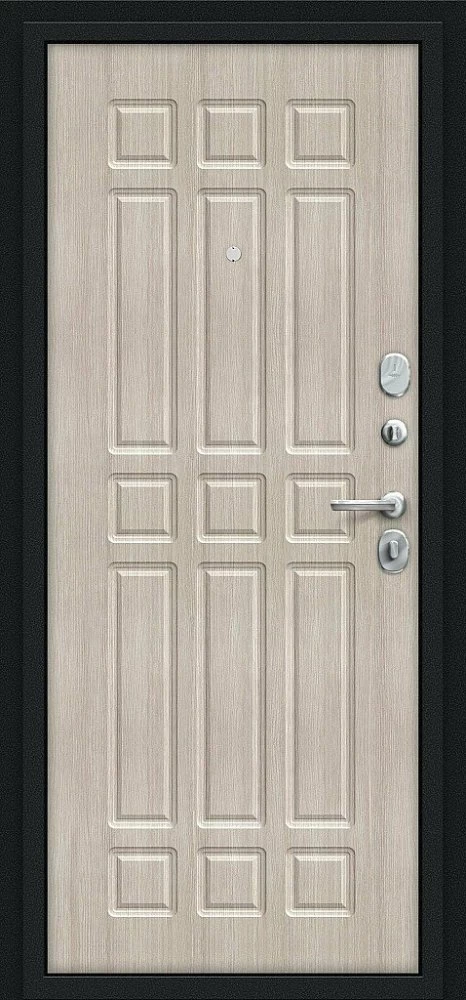 Надежная входная Дверь Браво Мило Букле черное/Cappuccino Veralinga премиум класса по цене 30 010 руб. Большая толщина стали защитит от проникновения в ваш дом, квартиру или коттедж. Используется очень качественная фурнитура: замки, цилиндры, ручки, защелки. Покрытие и отделка двери изготовлено под внимательным контролем производителя. Дверь имеет долгий срок службы и гарантию.