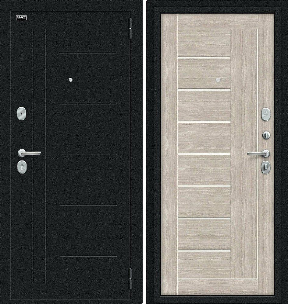 Надежная входная Дверь Браво Проф Букле черное/Cappuccino Veralinga премиум класса по цене 33 210 руб. Большая толщина стали защитит от проникновения в ваш дом, квартиру или коттедж. Используется очень качественная фурнитура: замки, цилиндры, ручки, защелки. Покрытие и отделка двери изготовлено под внимательным контролем производителя. Дверь имеет долгий срок службы и гарантию.