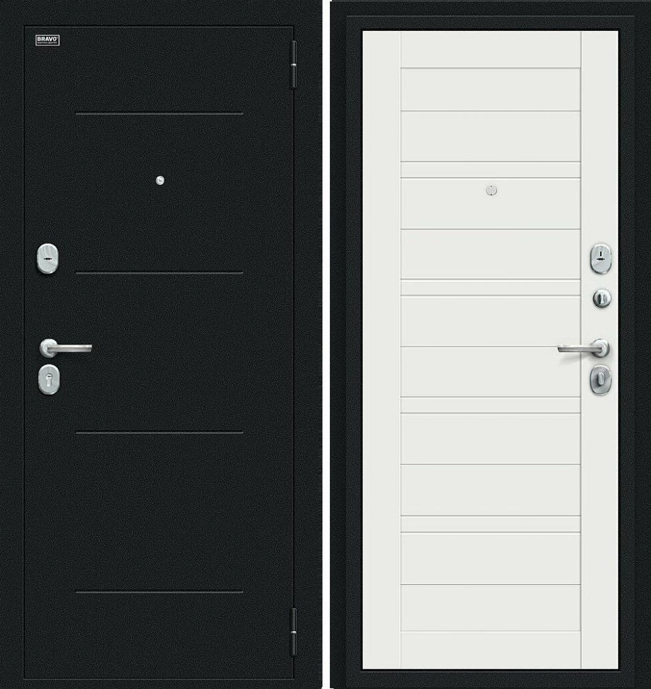 Надежная входная Дверь Браво Сити Kale Букле черное/Off-white премиум класса по цене 36 730 руб. Большая толщина стали защитит от проникновения в ваш дом, квартиру или коттедж. Используется очень качественная фурнитура: замки, цилиндры, ручки, защелки. Покрытие и отделка двери изготовлено под внимательным контролем производителя. Дверь имеет долгий срок службы и гарантию.