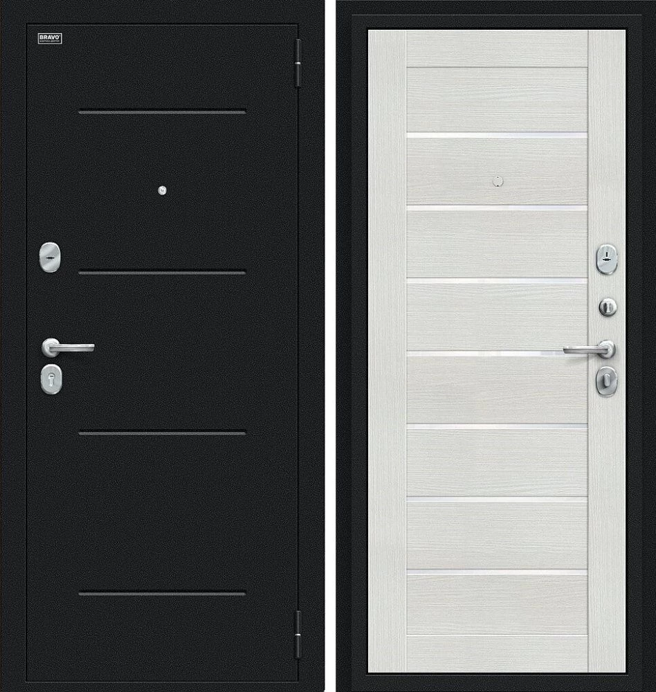 Надежная входная Дверь Браво Техно Букле черное/Bianco Veralinga премиум класса по цене 31 610 руб. Большая толщина стали защитит от проникновения в ваш дом, квартиру или коттедж. Используется очень качественная фурнитура: замки, цилиндры, ручки, защелки. Покрытие и отделка двери изготовлено под внимательным контролем производителя. Дверь имеет долгий срок службы и гарантию.