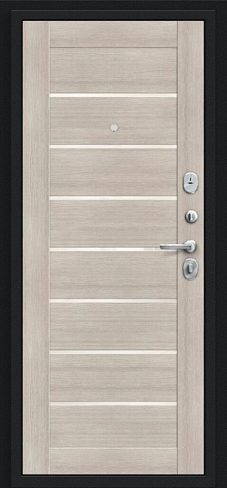 Надежная входная Дверь Браво Техно Букле черное/Cappuccino Veralinga премиум класса по цене 31 610 руб. Большая толщина стали защитит от проникновения в ваш дом, квартиру или коттедж. Используется очень качественная фурнитура: замки, цилиндры, ручки, защелки. Покрытие и отделка двери изготовлено под внимательным контролем производителя. Дверь имеет долгий срок службы и гарантию.