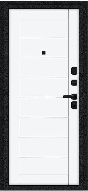 Надежная входная Дверь Браво Техно/SBlack Букле черное/White Silk премиум класса по цене 33 710 руб. Большая толщина стали защитит от проникновения в ваш дом, квартиру или коттедж. Используется очень качественная фурнитура: замки, цилиндры, ручки, защелки. Покрытие и отделка двери изготовлено под внимательным контролем производителя. Дверь имеет долгий срок службы и гарантию.