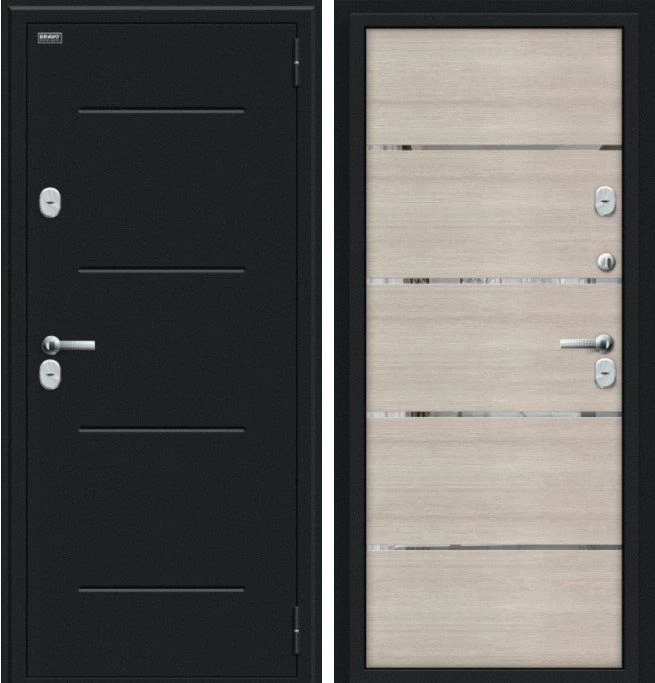 Надежная входная Дверь Браво Thermo Лайн Букле черное/Cappuccino Veralinga премиум класса по цене 48 110 руб. Большая толщина стали защитит от проникновения в ваш дом, квартиру или коттедж. Используется очень качественная фурнитура: замки, цилиндры, ручки, защелки. Покрытие и отделка двери изготовлено под внимательным контролем производителя. Дверь имеет долгий срок службы и гарантию.