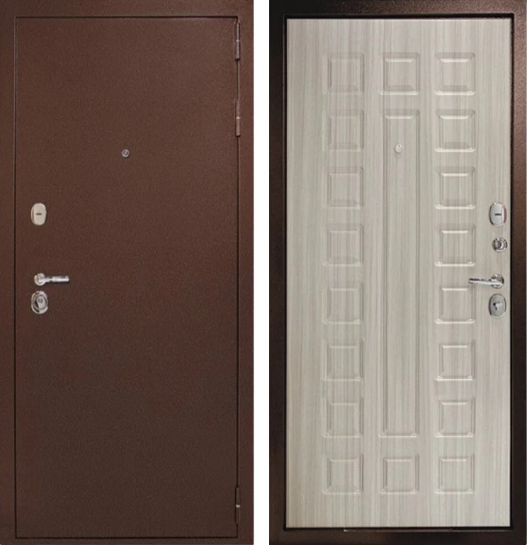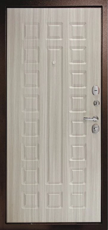 Надежная входная Дверь Рубикон 1 Медь Сандал белый премиум класса по цене 33 080 руб. Большая толщина стали защитит от проникновения в ваш дом, квартиру или коттедж. Используется очень качественная фурнитура: замки, цилиндры, ручки, защелки. Покрытие и отделка двери изготовлено под внимательным контролем производителя. Дверь имеет долгий срок службы и гарантию.