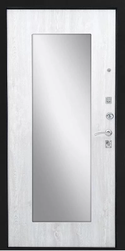 Надежная входная Дверь Ратибор Люкс Зеркало Черное серебро/Сосна белая премиум класса по цене 31 360 руб. Большая толщина стали защитит от проникновения в ваш дом, квартиру или коттедж. Используется очень качественная фурнитура: замки, цилиндры, ручки, защелки. Покрытие и отделка двери изготовлено под внимательным контролем производителя. Дверь имеет долгий срок службы и гарантию.