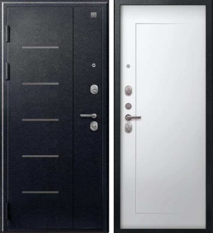 Надежная входная Дверь V-03 Черный муар - Кашемир белый премиум класса по цене 39 820 руб. Большая толщина стали защитит от проникновения в ваш дом, квартиру или коттедж. Используется очень качественная фурнитура: замки, цилиндры, ручки, защелки. Покрытие и отделка двери изготовлено под внимательным контролем производителя. Дверь имеет долгий срок службы и гарантию.