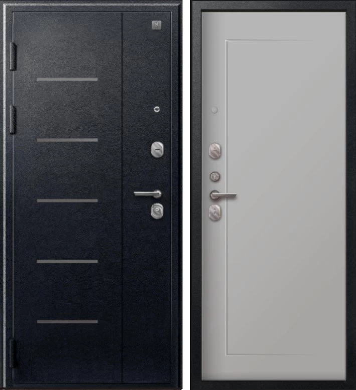 Надежная входная Дверь V-03 Черный муар - Кашемир сильвер премиум класса по цене 43 060 руб. Большая толщина стали защитит от проникновения в ваш дом, квартиру или коттедж. Используется очень качественная фурнитура: замки, цилиндры, ручки, защелки. Покрытие и отделка двери изготовлено под внимательным контролем производителя. Дверь имеет долгий срок службы и гарантию.