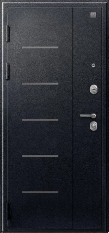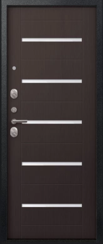 Надежная входная Дверь V-05 Черный муар - Темная лиственница премиум класса по цене 43 060 руб. Большая толщина стали защитит от проникновения в ваш дом, квартиру или коттедж. Используется очень качественная фурнитура: замки, цилиндры, ручки, защелки. Покрытие и отделка двери изготовлено под внимательным контролем производителя. Дверь имеет долгий срок службы и гарантию.